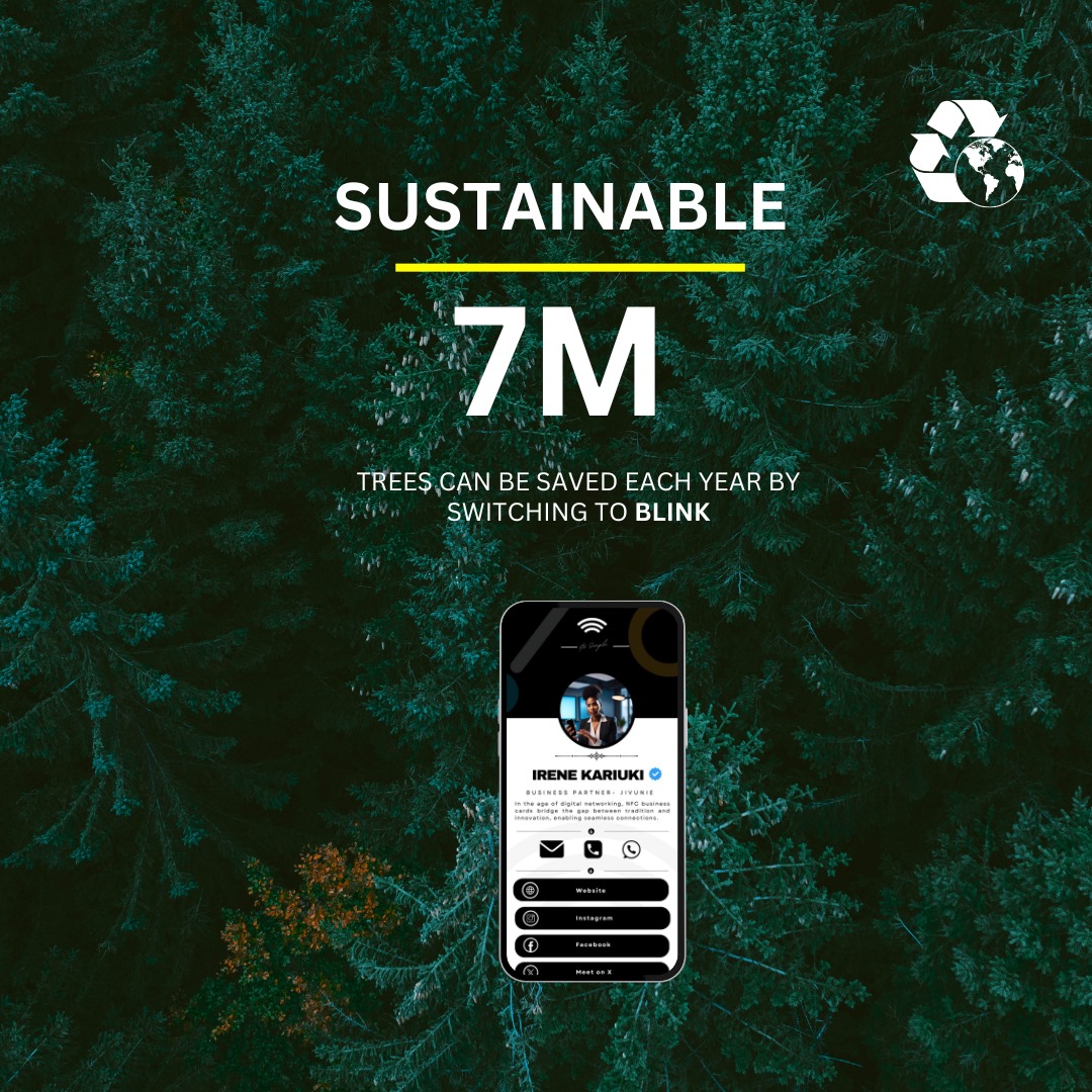 At Blink Digital, we’re transforming networking while protecting the planet. Did you know that approximately 9 trees are cut down for every 1,000 paper business cards? By choosing our NFC-enabled Blink Cards, you’re helping save over 70,000 trees and counting. The choice is yours: cut down or grow trees.